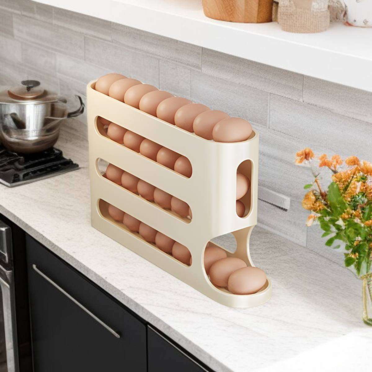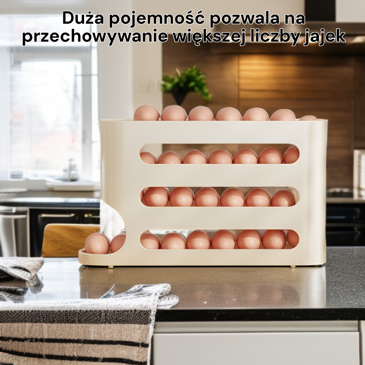 ● Duża pojemność pozwala na przechowywanie większej liczby jajek, dzięki czemu idealnie sprawdzi się w większych rodzinach lub podczas przygotowań do świąt i spotkań.