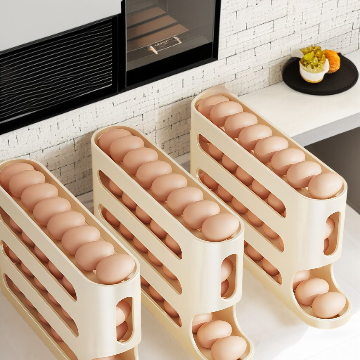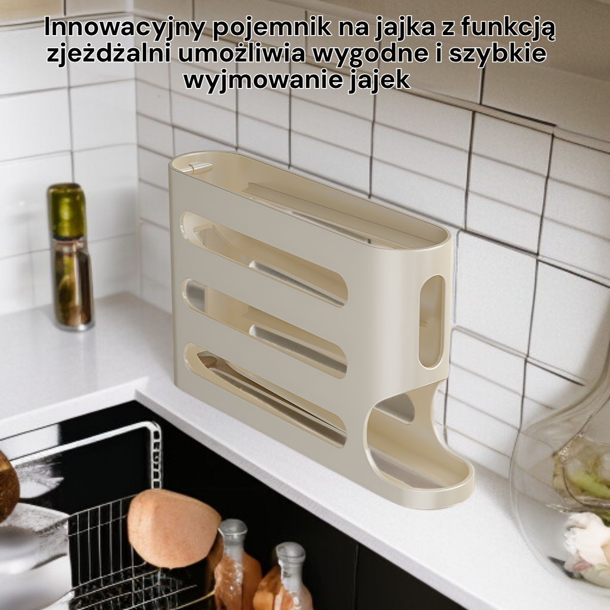 ● Innowacyjny pojemnik na jajka z funkcją zjeżdżalni umożliwia wygodne i szybkie wyjmowanie jajek, co zapobiega ich uszkodzeniu oraz ułatwia codzienne korzystanie.