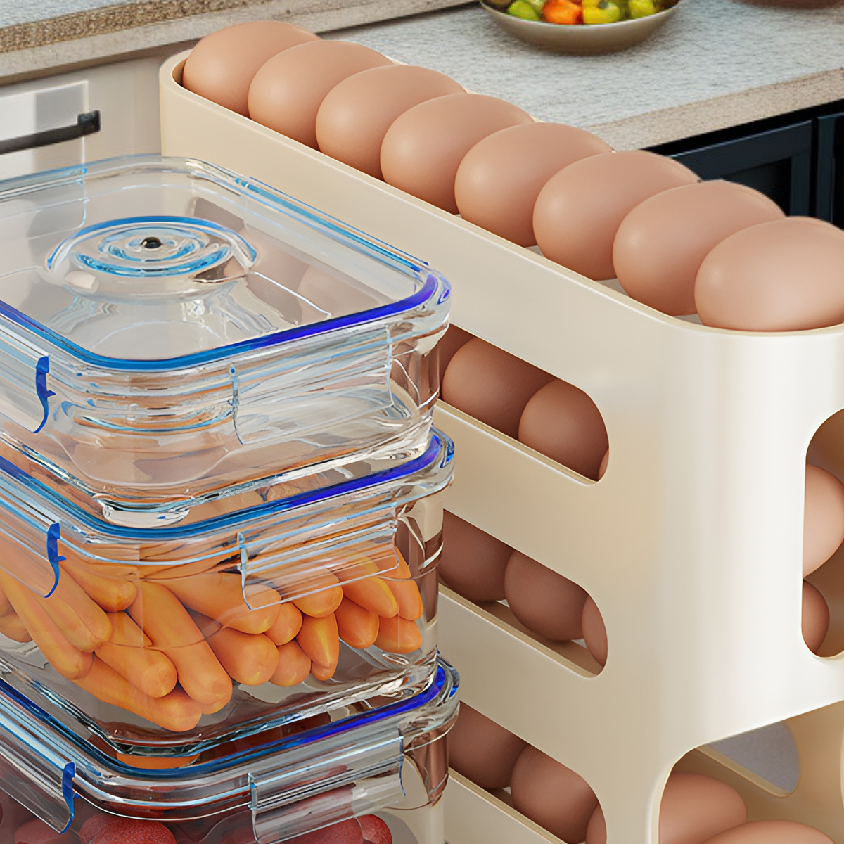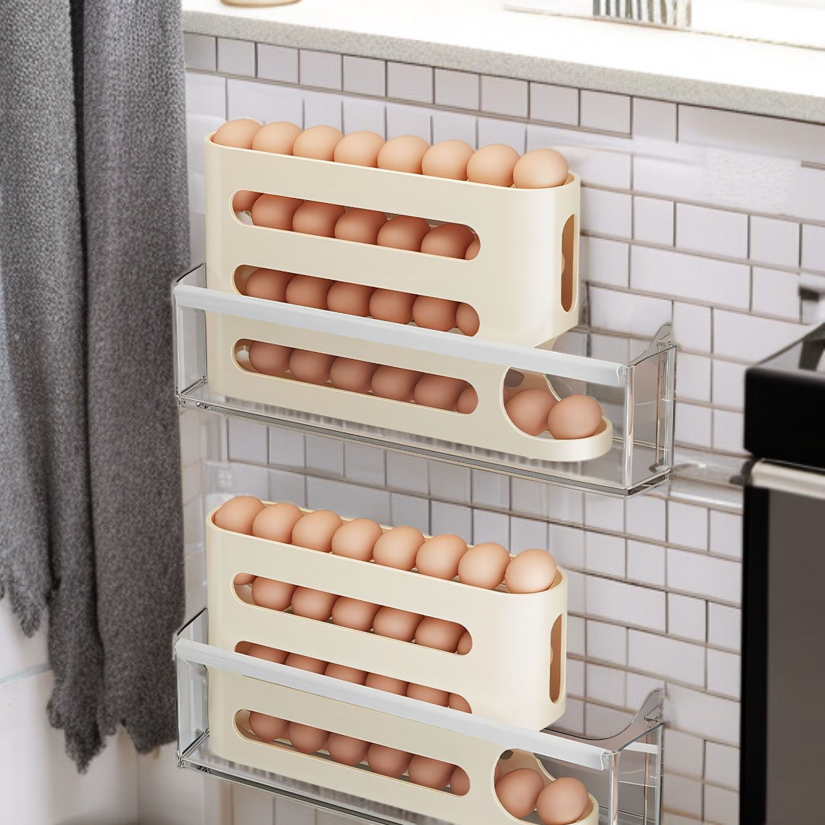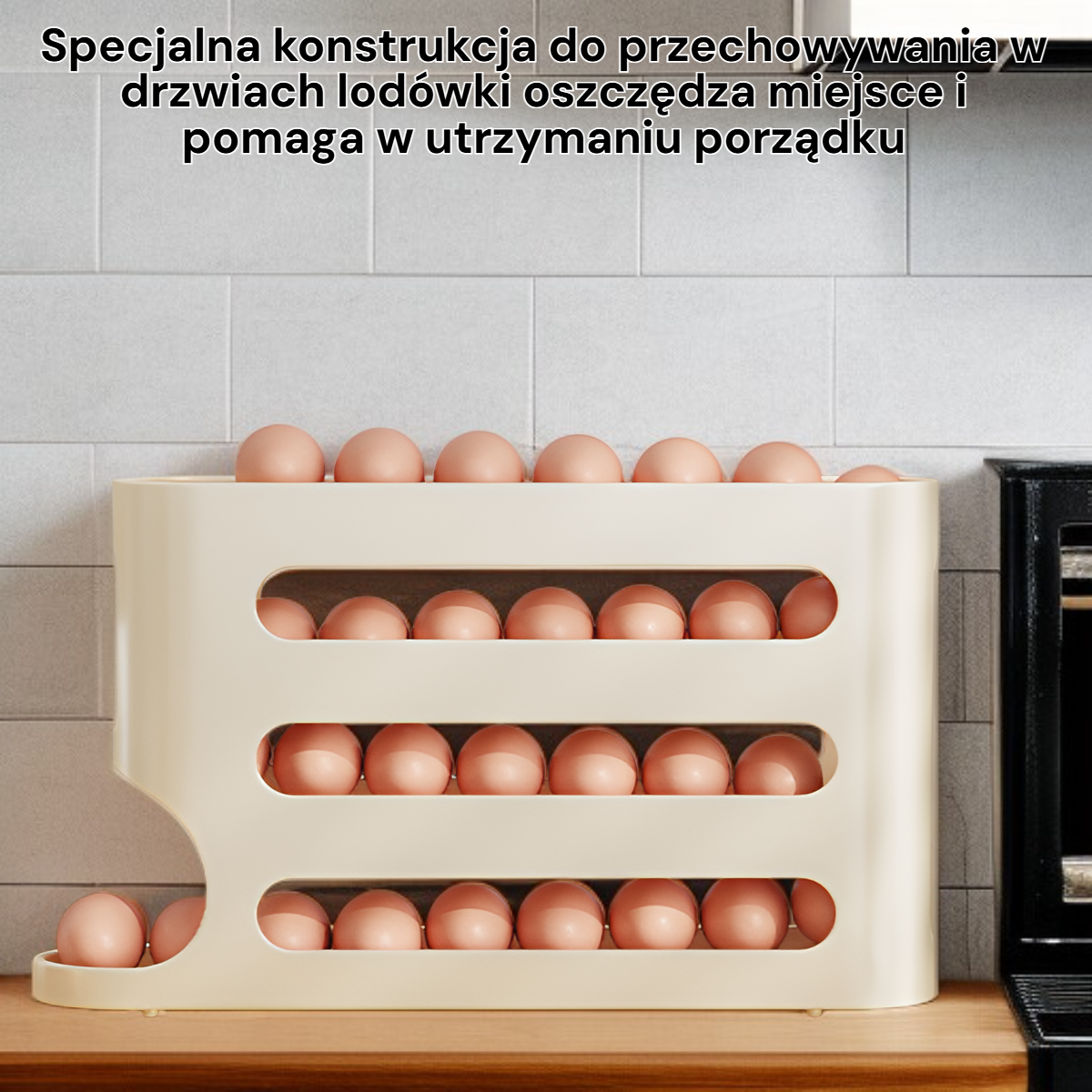 Pojemnik na jajka z funkcją zjeżdżalni do drzwi lodówki, duża pojemność
