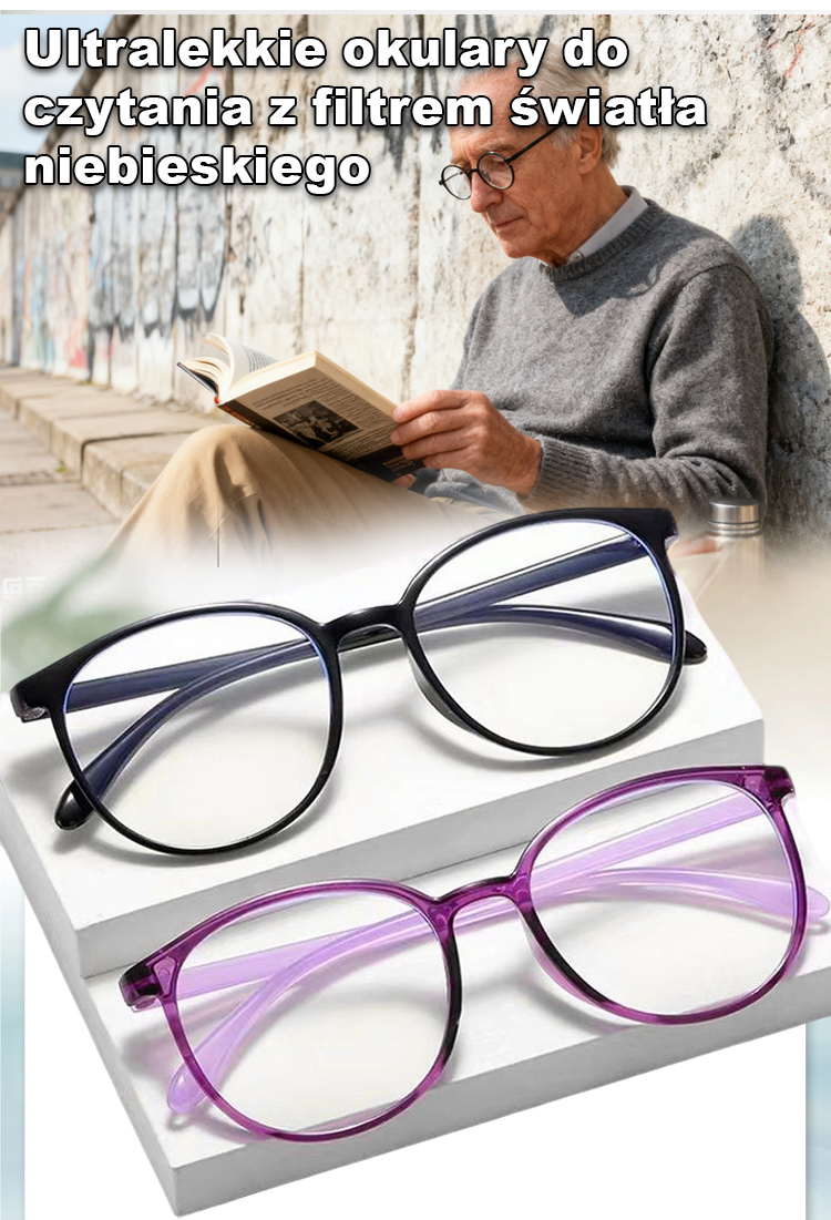 Ultralekkie okulary do czytania z filtrem światła niebieskiego
